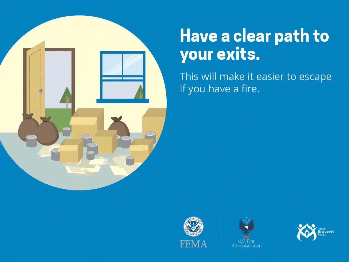 Fire can spread rapidly through your home, leaving you as little as one or two minutes to escape safely once the alarm sounds. Pull together everyone in your household and make a plan. Walk through your home and inspect all possible exits and escape routes. Households with children should consider drawing a floor plan of your home, marking two ways out of each room, including windows and doors. Also, mark the location of each smoke alarm. Here are some tips for helping you with your home fire escape plan!